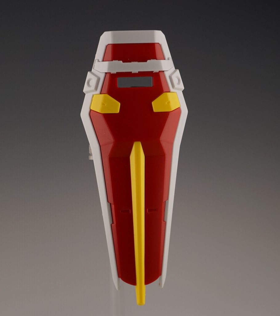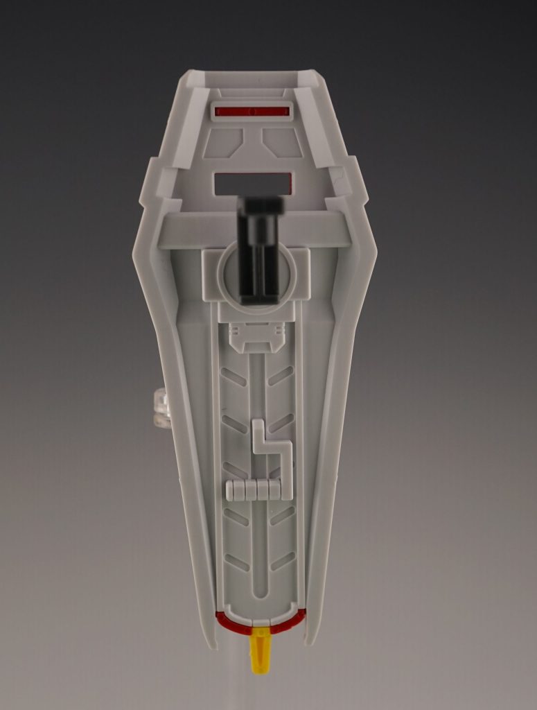 付属品はビームライフル(57mm高エネルギービームライフル)とシールド(対ビームシールド)の二つになります。シールドは完璧に色分けされており裏面にもディテールが施されています。ライフルのフォアグリップとシールドのグリップは一体成型になっており可動しません。
