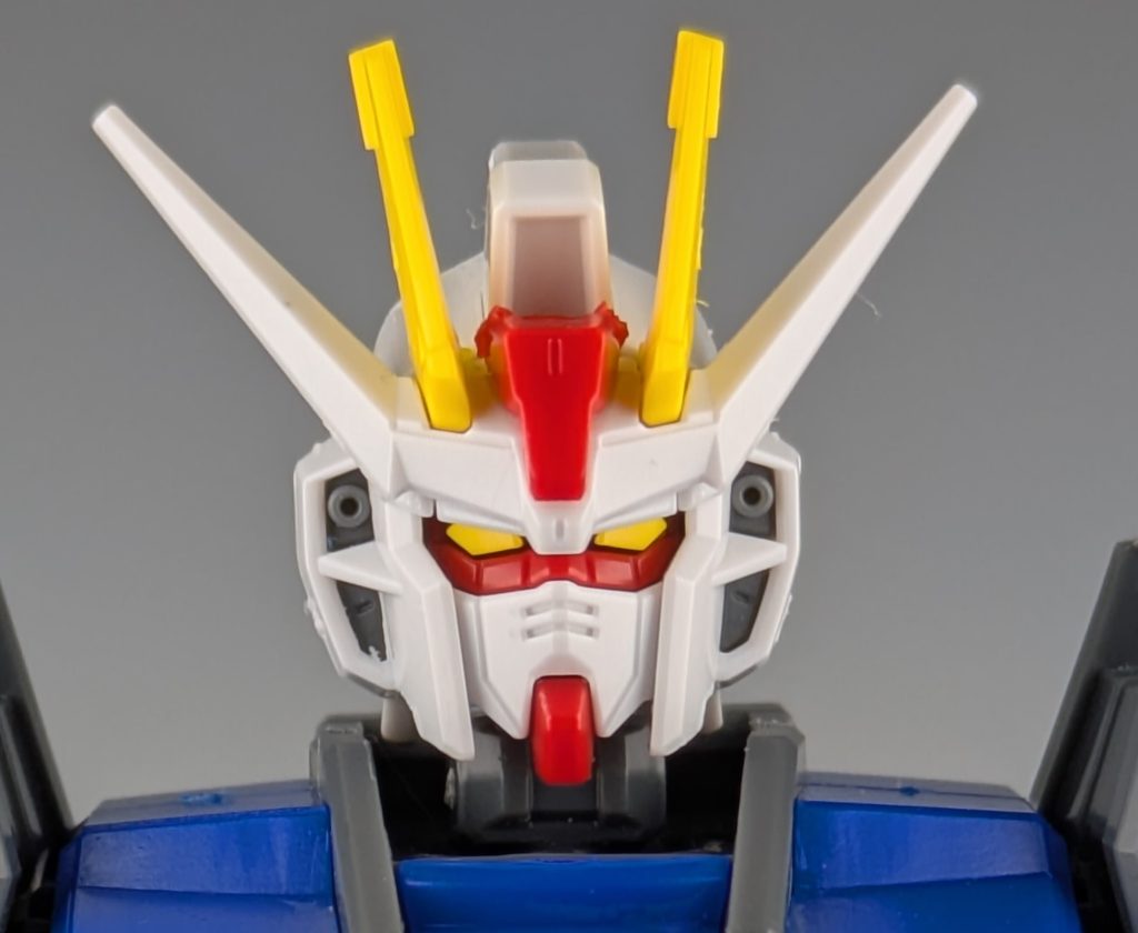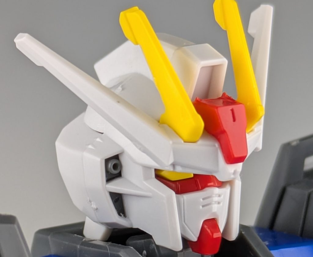 頭部はツインアイはもちろんバルカンも色分けで再現されています。頭頂部にあるカメラは色分けされていません。