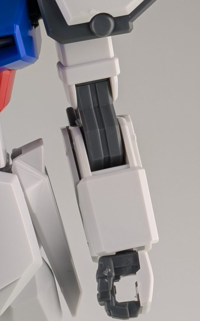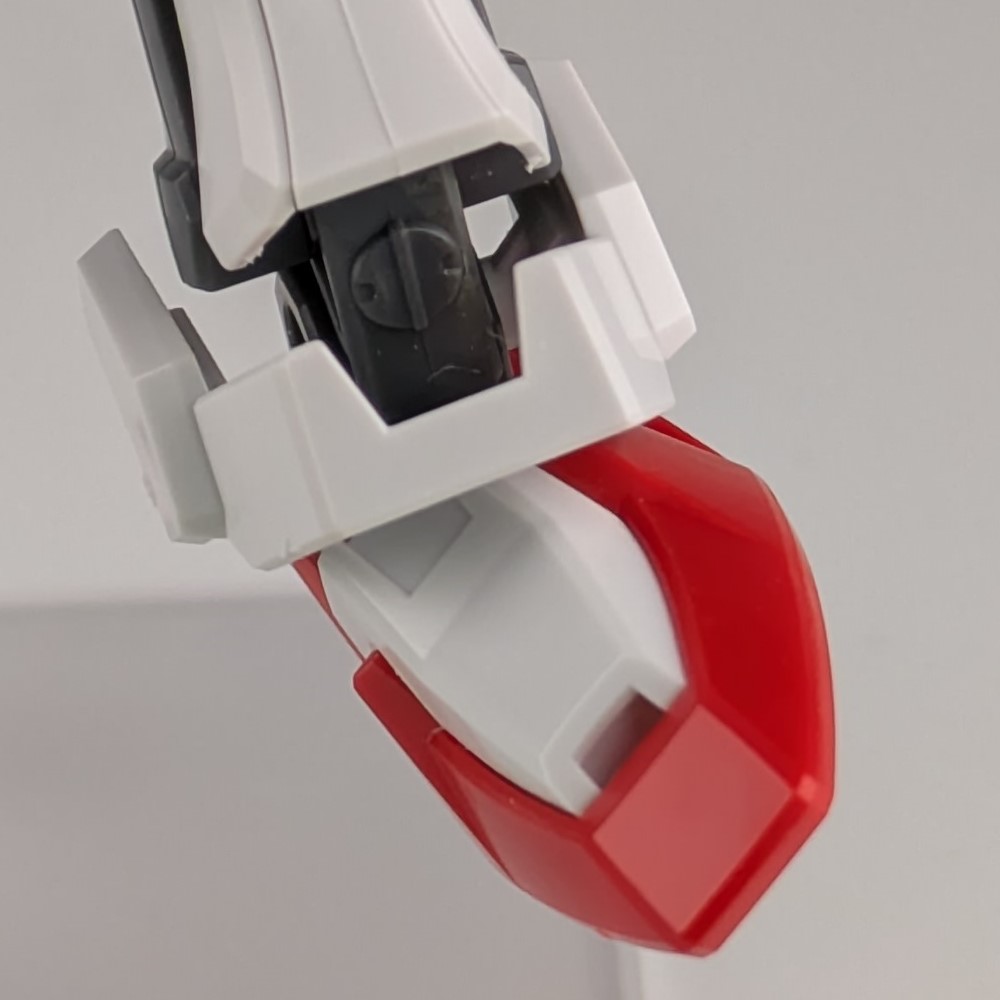 腕の関節部分は、これまでのガンプラにはあまり見られない独特な形状をしており、新鮮さと格好良さを感じさせるポイントだと個人的に思います。